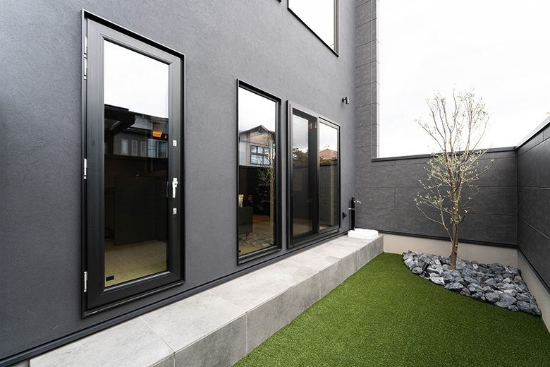 角地に佇むそのデザイン住宅は、街並みに一段ときらめきを与える。