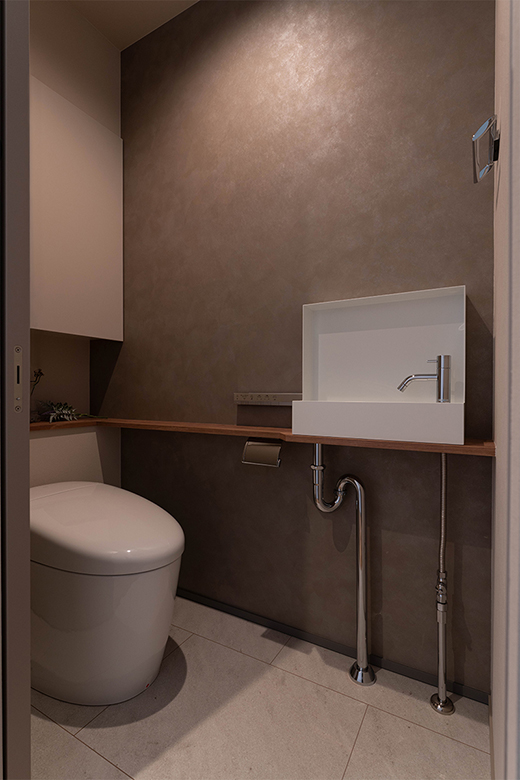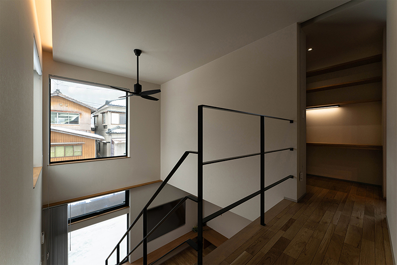 リビングと洗面台をつなげた動線設計により、冬でも住まい全体に暖かい空気が行き届く。