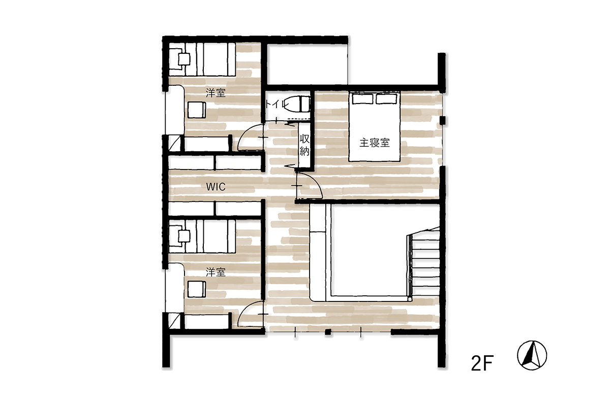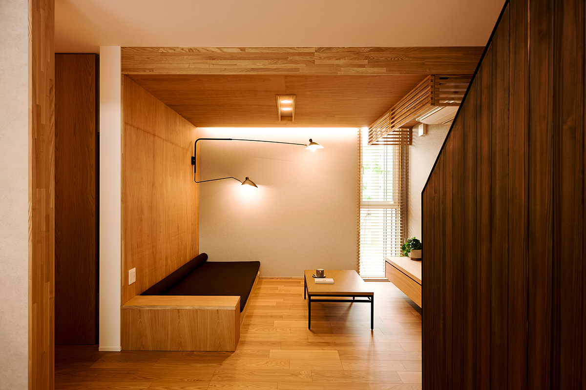 オリジナルの意匠階段と吹き抜けを家の中心近くに配置することで、暖かな日差しや南北の風が通り抜け、家族の動線や声が自然と集まり、つながる空間を実現している。