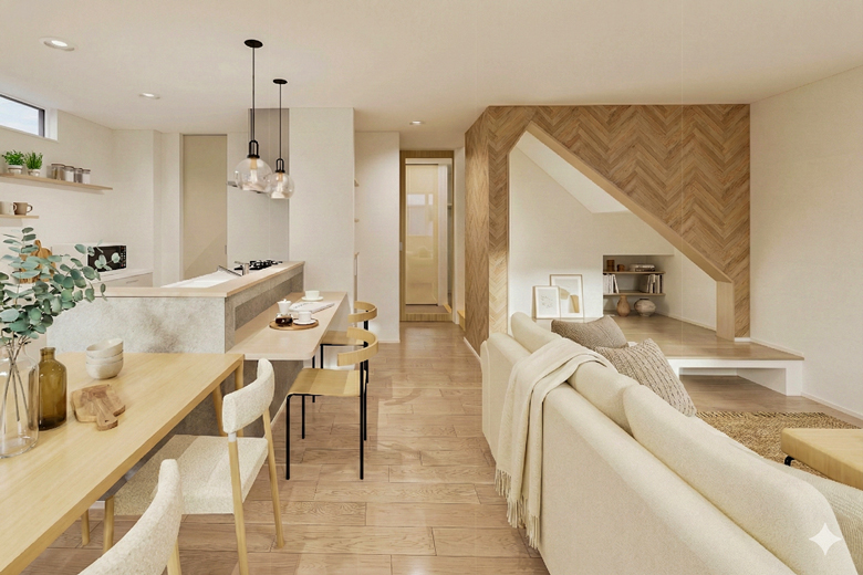 1階は廊下をほとんど設けない廊下レス設計とし、無駄のない動線を実現。