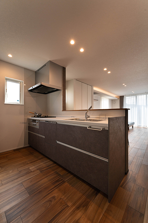 さらに、水回りを一直線にまとめ、キッチンからの動線もスムーズに。