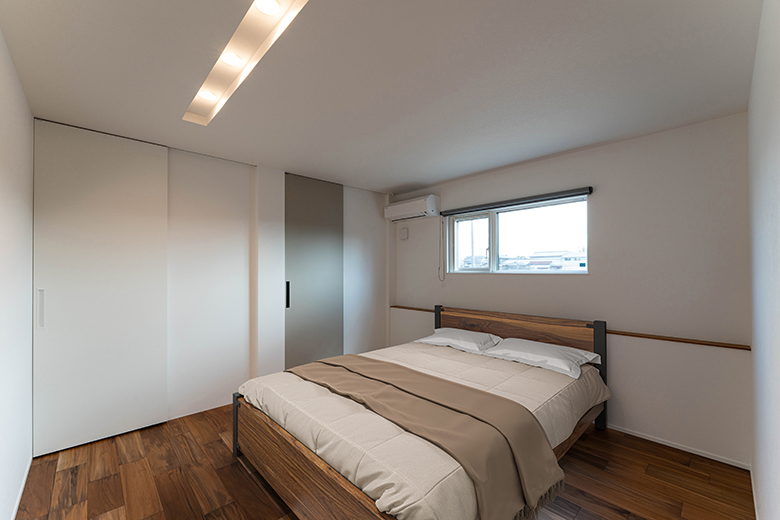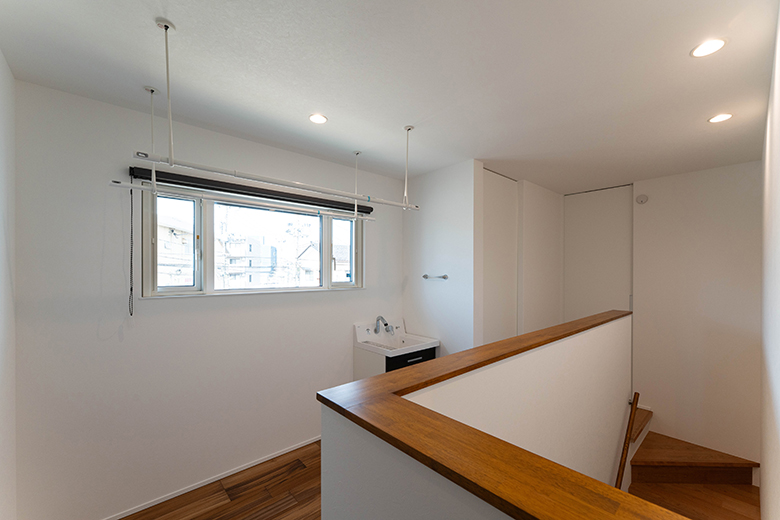 物干しスペースは1階・2階・屋外に設け、快晴の日が少ない新潟でも天候を気にせず洗濯ができるよう工夫した住まい。